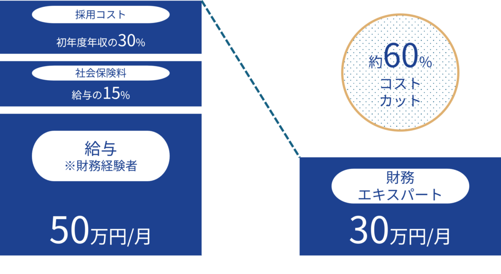 財務経験者(50万円/月収)を社内で採用した場合に比べ、